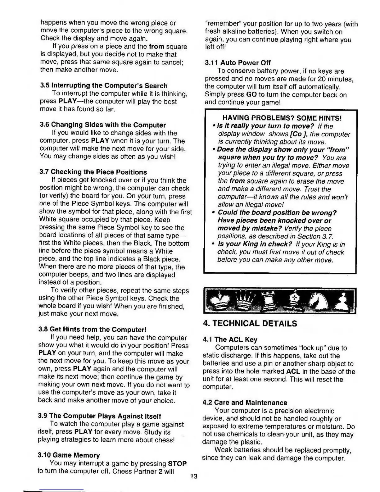 Saitek Chess Partner2 - Interrupting the Computers Search; Changing Sides with the Computer; Checking the Pieces Positions; Auto Power off