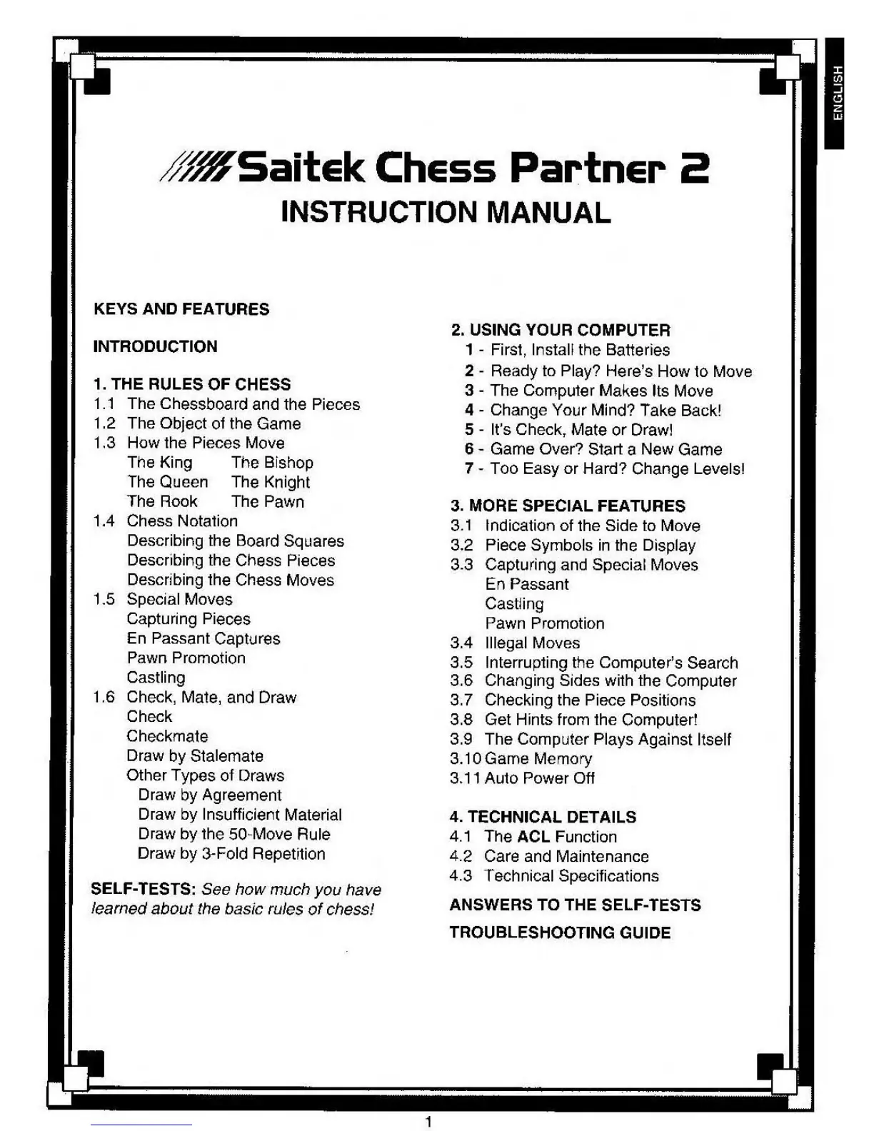 Saitek Chess Partner2 - Keys and Features; Introduction