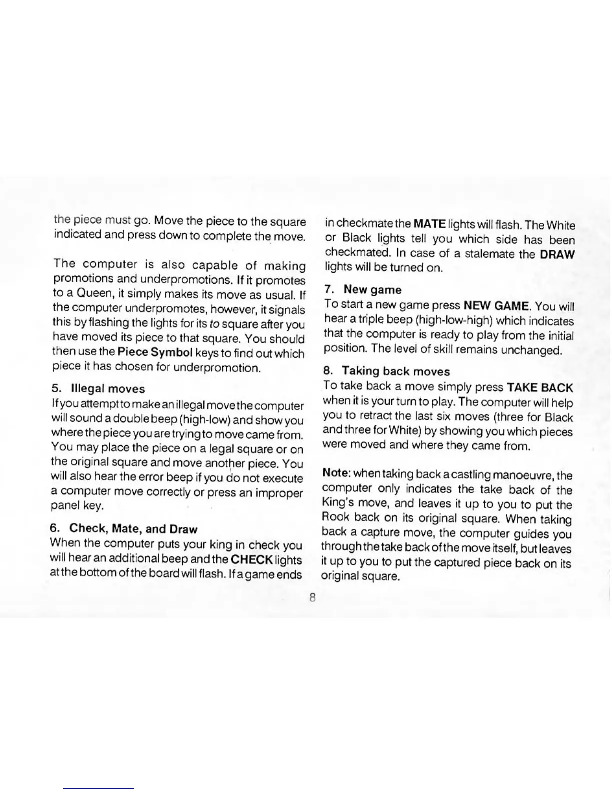 Saitek Electronic Chess Partner - Illegal Moves and Game Events; Taking Back Moves