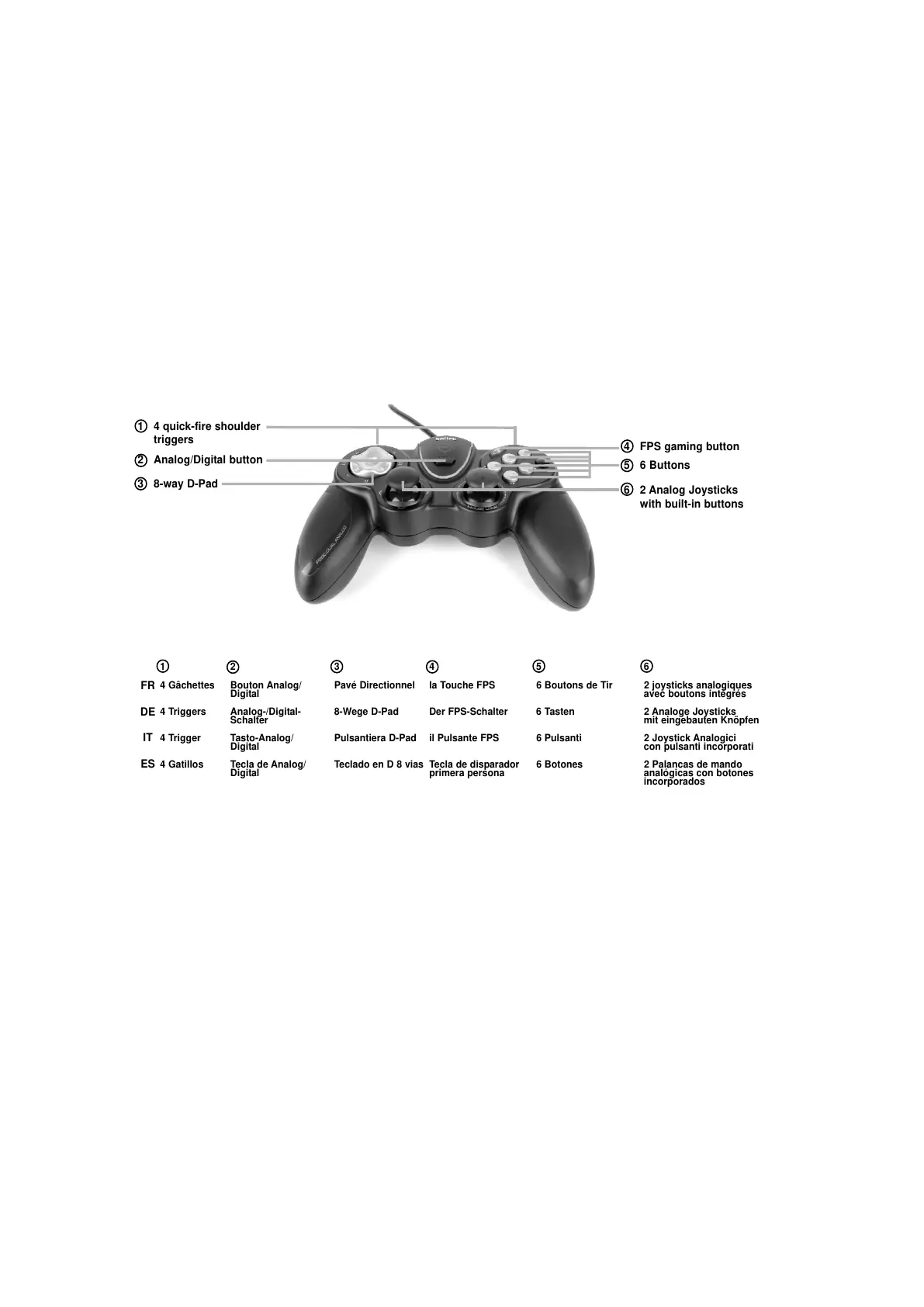 4 Triggers Analog-/Digital- 8-Wege D-Pad Der FPS-Schalter 6 Tasten 2 Analoge Joysticks