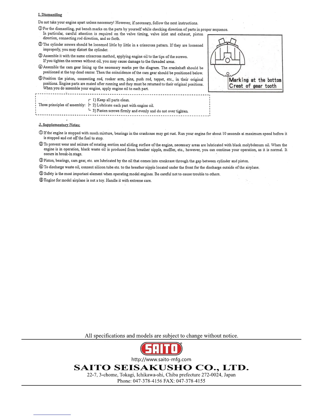 Saito FA-72B - Dismantling Instructions