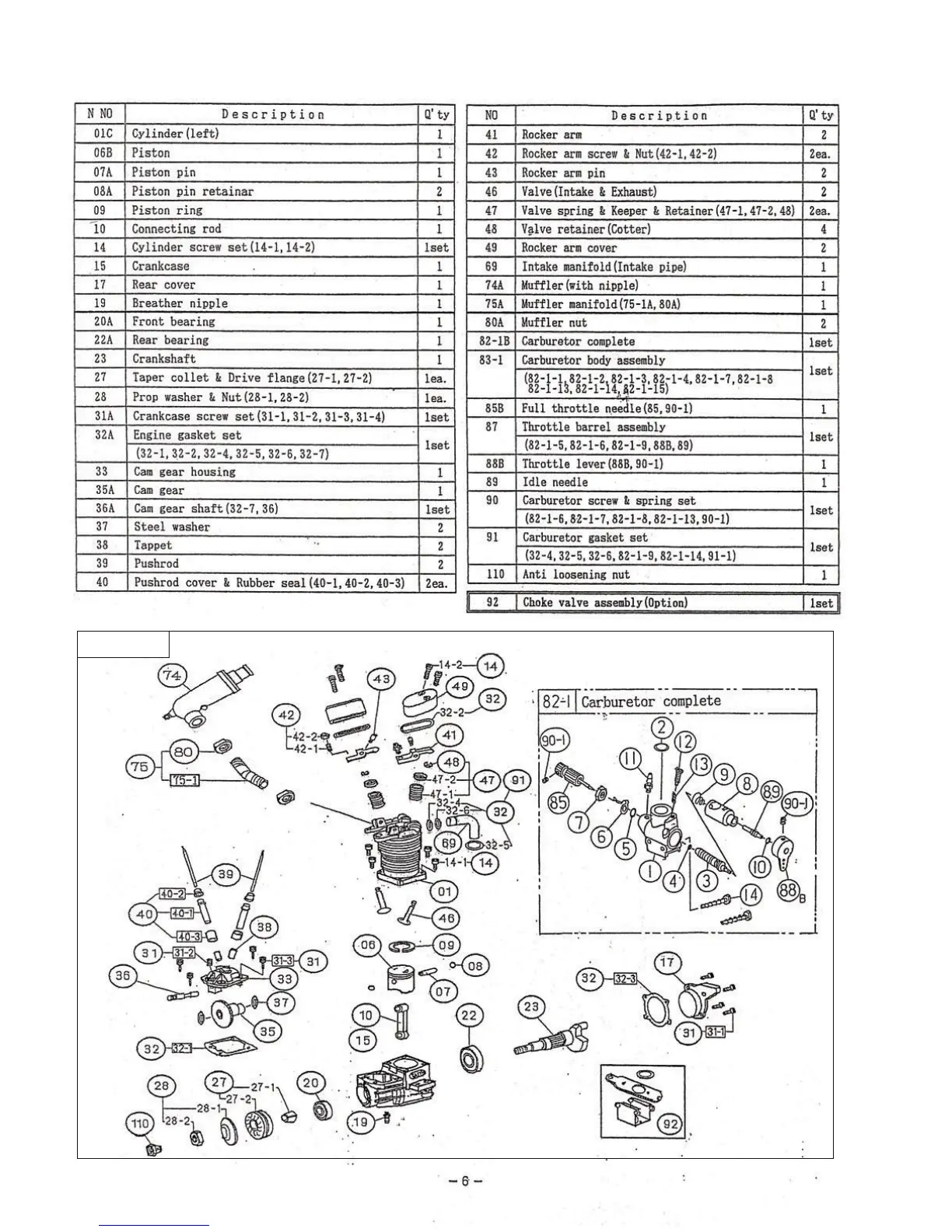 Saito FA-72B - SAITO FA-72 B, 72 BGK Parts List