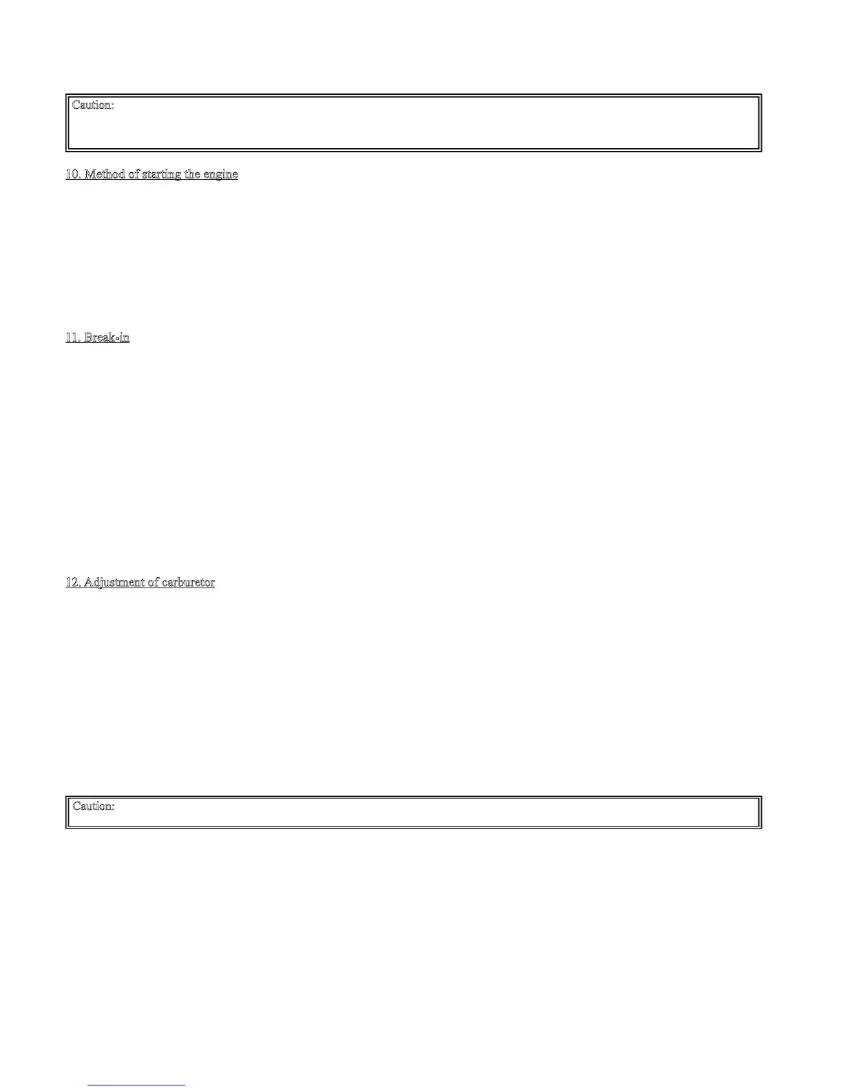 (1) After filling up the fuel tank, start the engine as described in the above section “10” and operate it at a low speed in the condition for