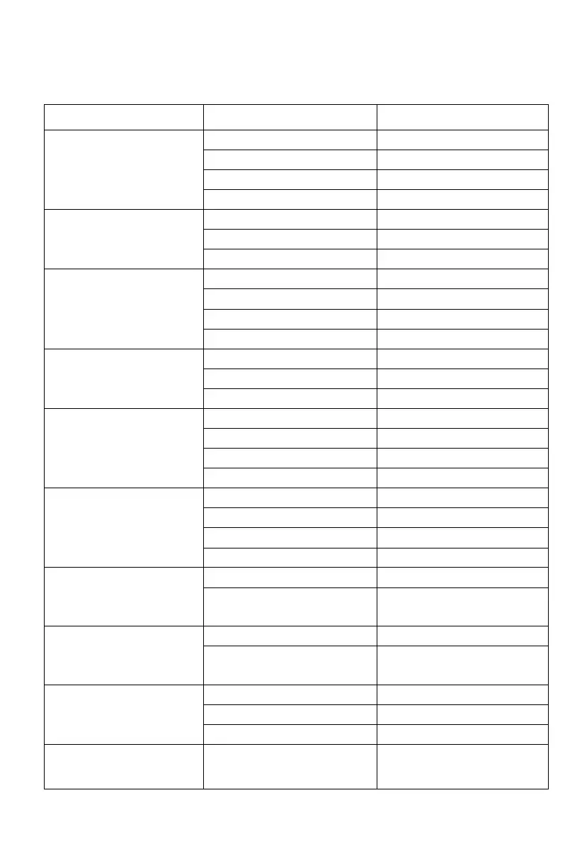 Tabla de referencia para los menús automáticos