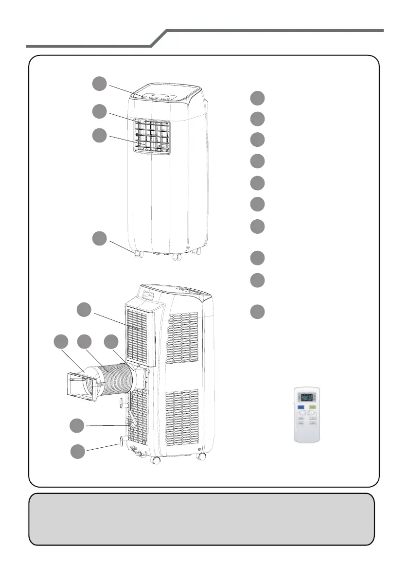 O tubo de descarga de calor e os outros acessórios de instalação não
