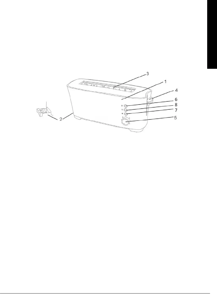 1. Ajuste la longitud del cable de alimentación y páselo por el lado de la tostadora. Conecte