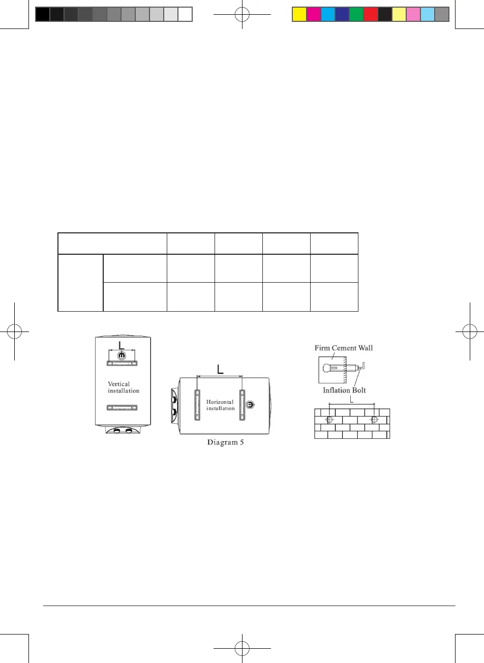 heater. Otherwise, the electric water heater may fall down from the walls, and cause the servere dam-
