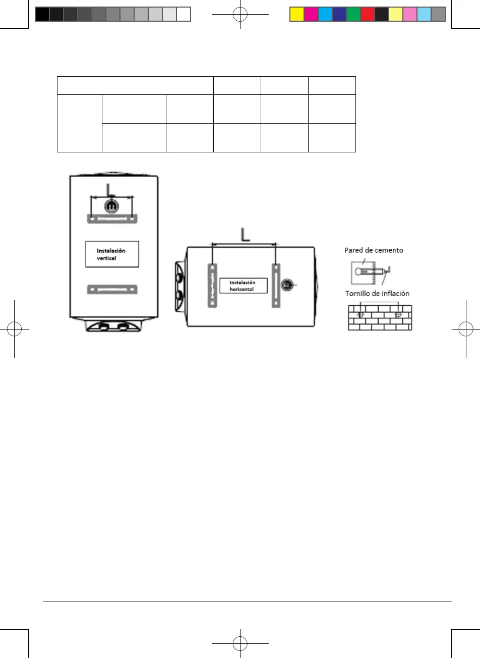 • Para su instalación en vertical, la tubería de salida agua caliente debe estar en la parte superior.