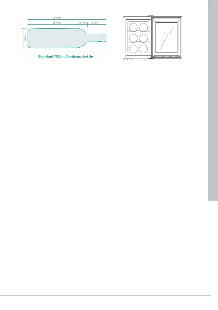 For example, you can store 6 standard 750ml size Bordeaux bottles in the appliance