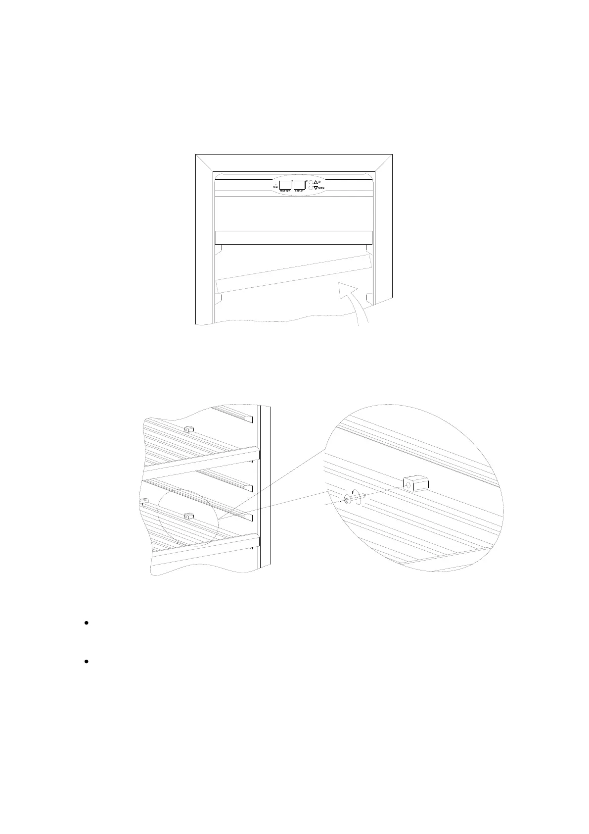 To fit or remove the shelf, tilt the shelf as per the diagram and simply pull out, or push