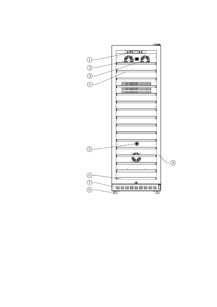 1: Control panel 6: Big wooden rack 11: Glass door