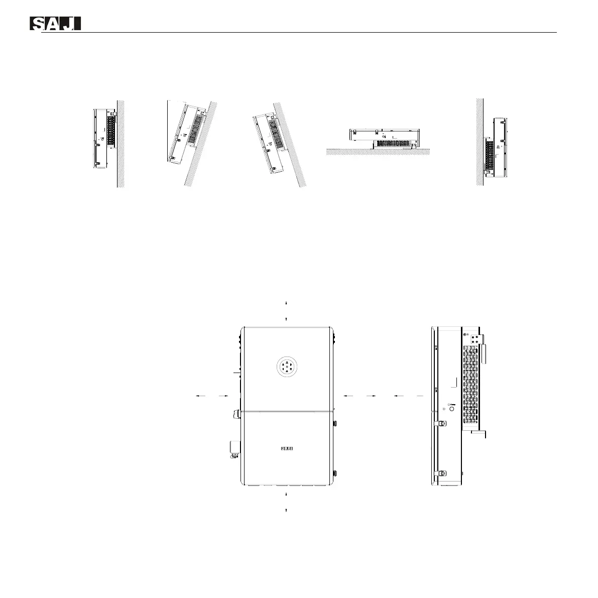 ⚫ Reserve enough clearance around the inverter to ensure a good air circulation at the installation