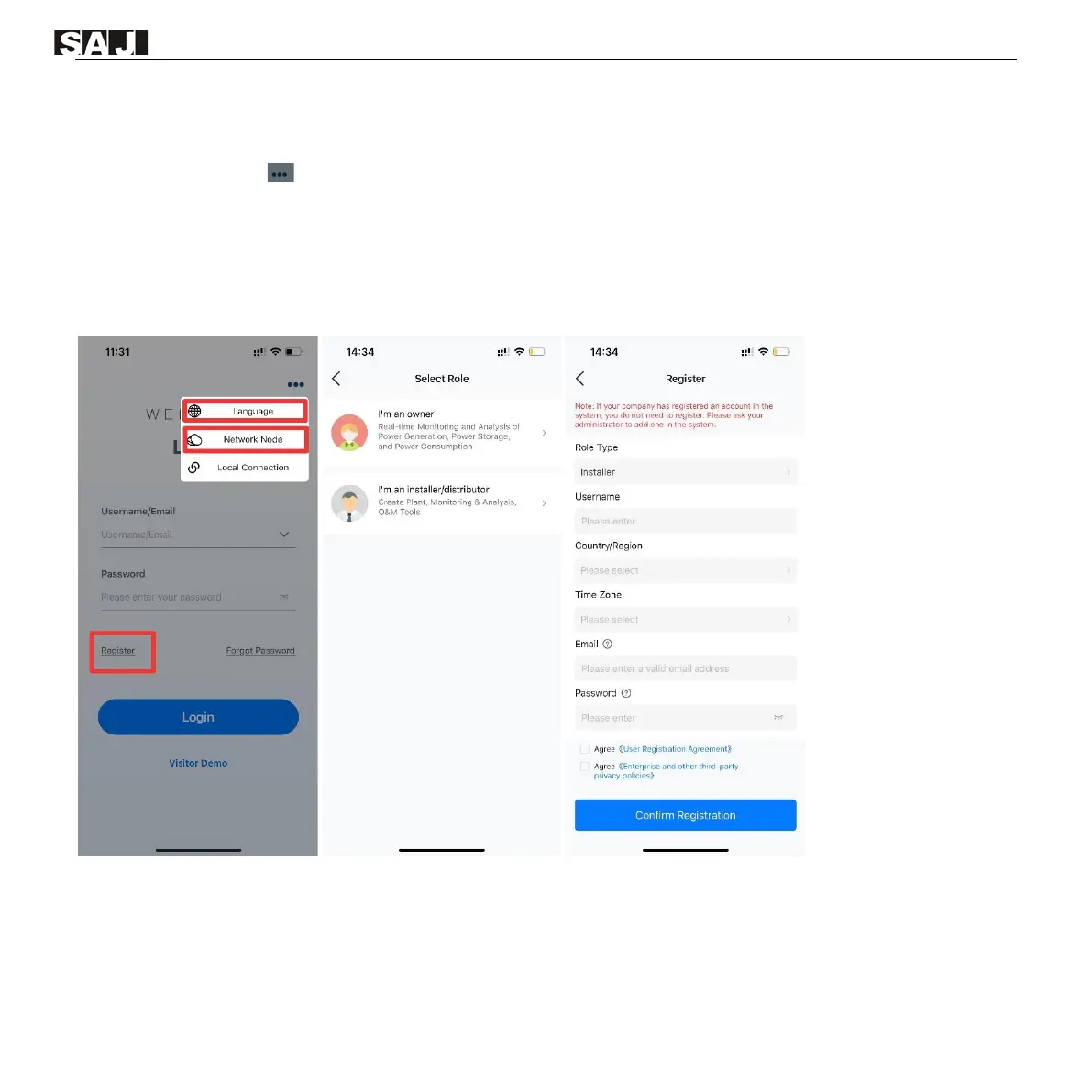 2. Tap Register. Choose whether you are an owner or an installer or distributor.