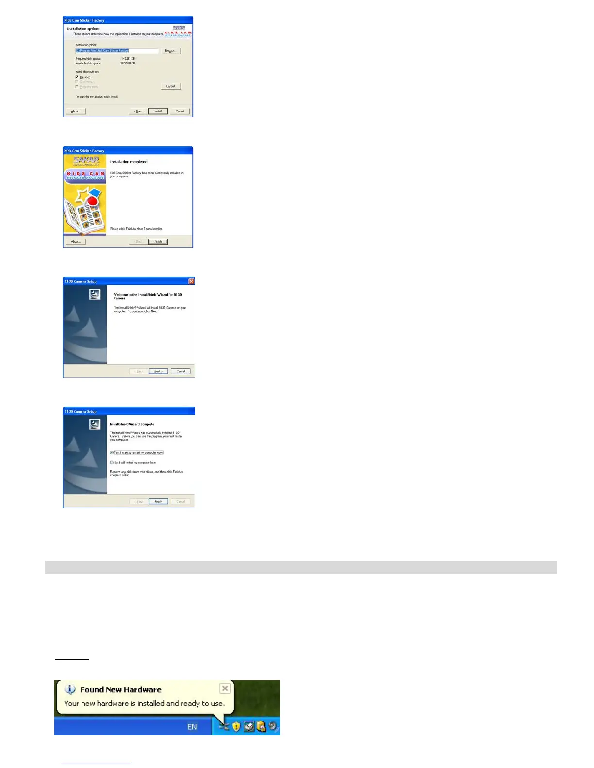 9. Congratulations!! You have successfully installed the “Kids Cam Sticker Factory” software, the “PhoTags WebCam Express” and the Camera driver.