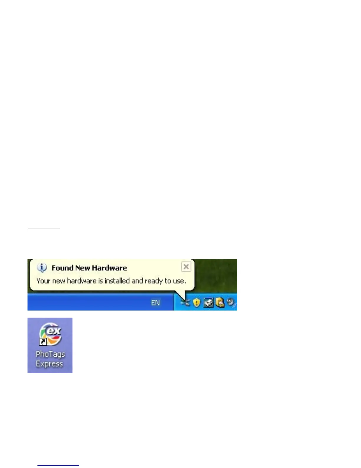 Important: For WinXP users - Do not open the software until you see the “Your new hardware is