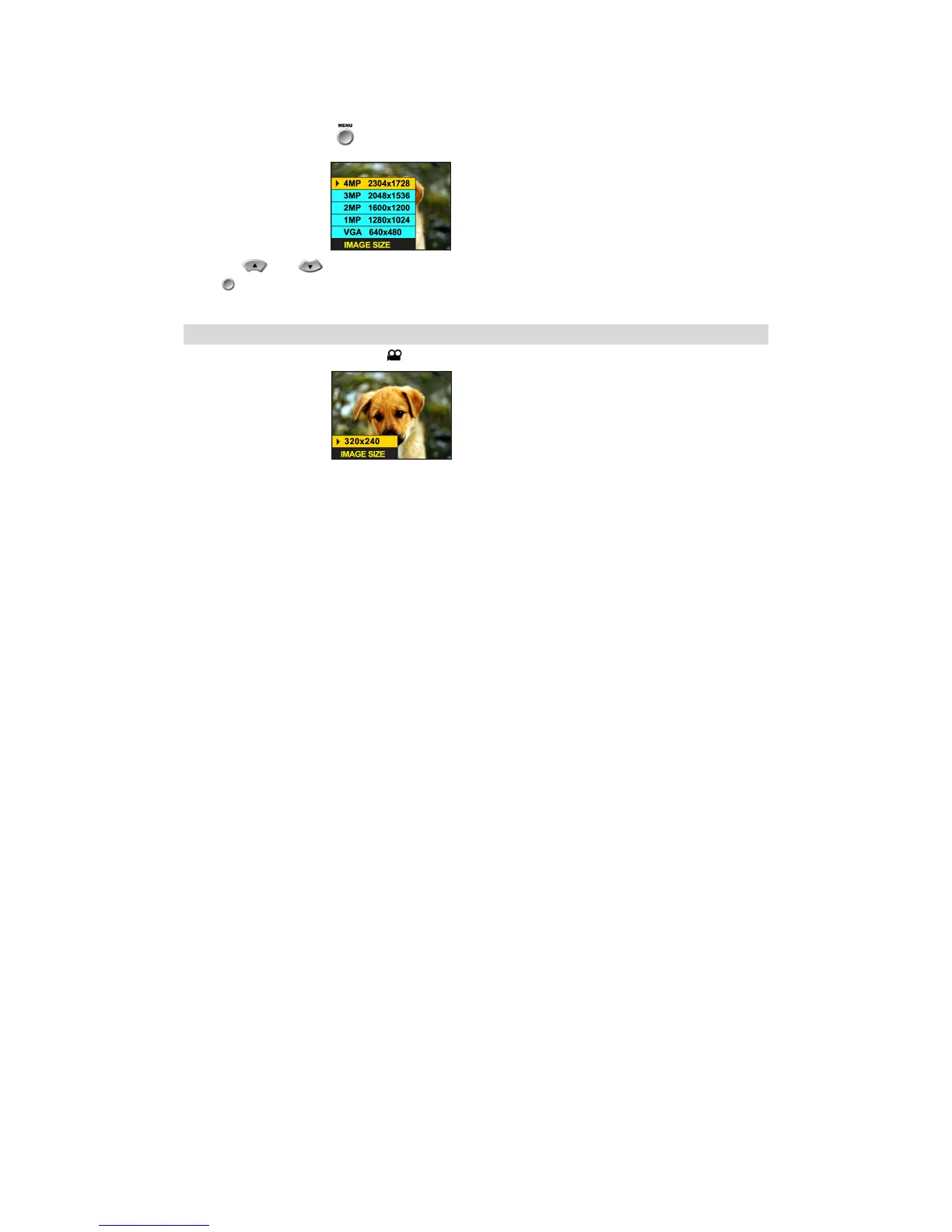 In Camera Mode: Press the button to display the IMAGE SIZE menu.