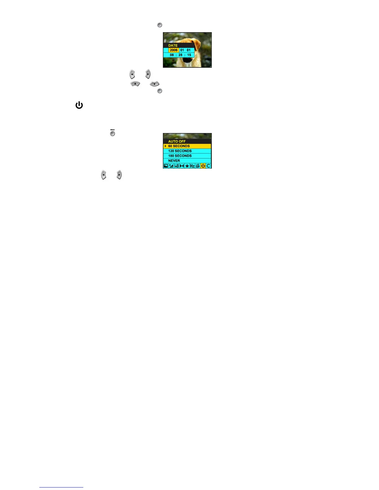 1. Press the and navigation buttons until you have selected the Auto Off menu.