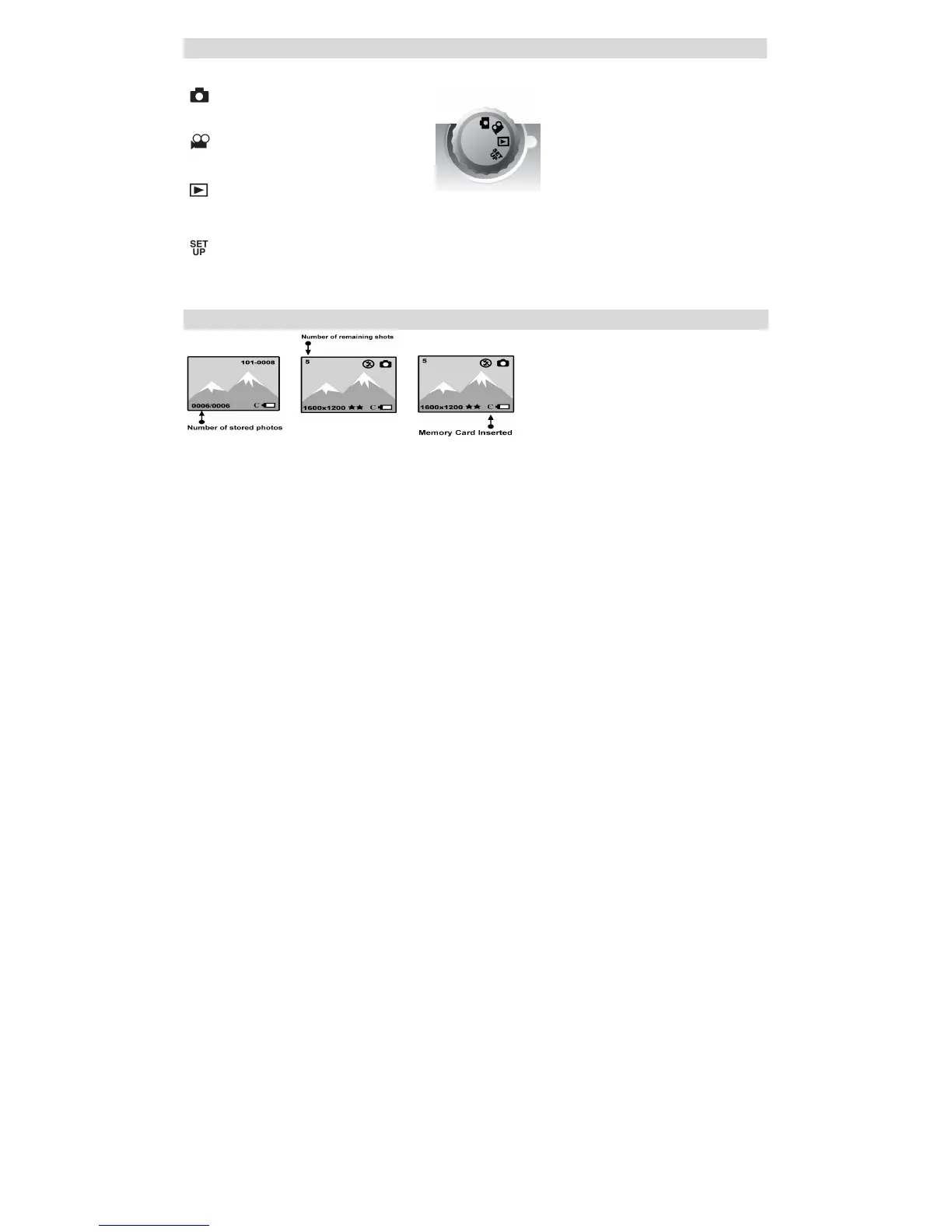There are 4 modes on your camera. To select a mode, align the icon with the indicator to the right of the mode dial.