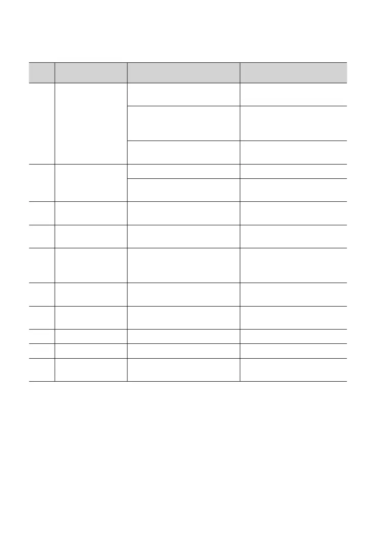 Fault descriptions Possible reasons Actions