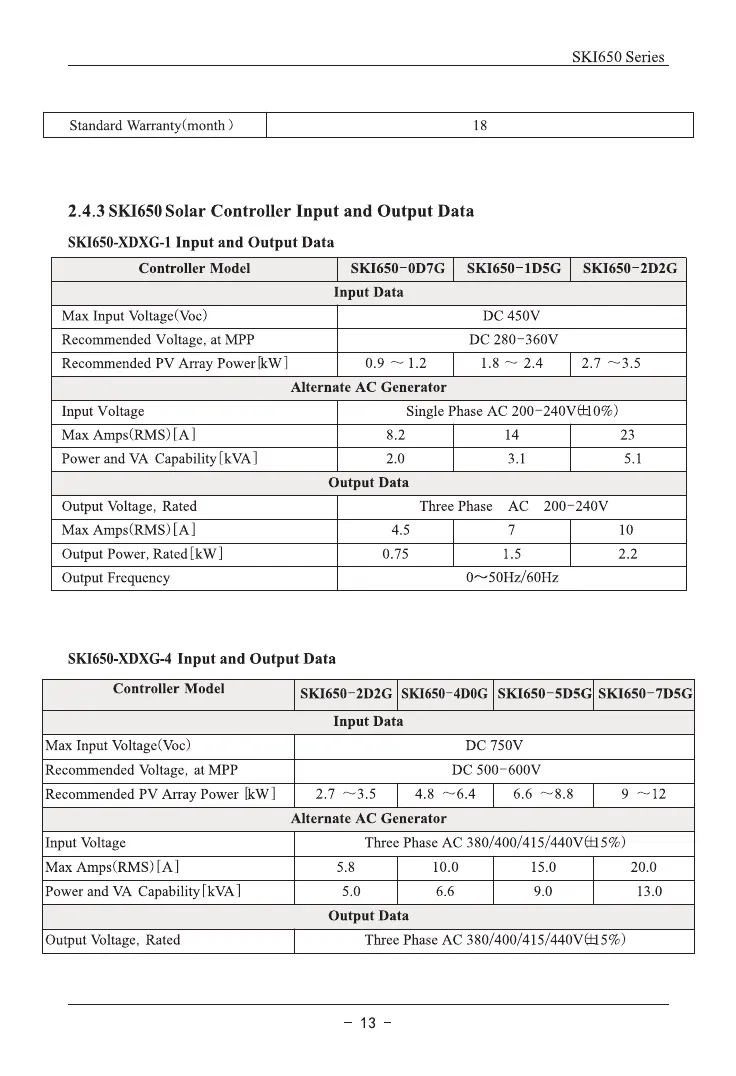 Sako SKI650-2D2G - Solar Controller Input and Output Data