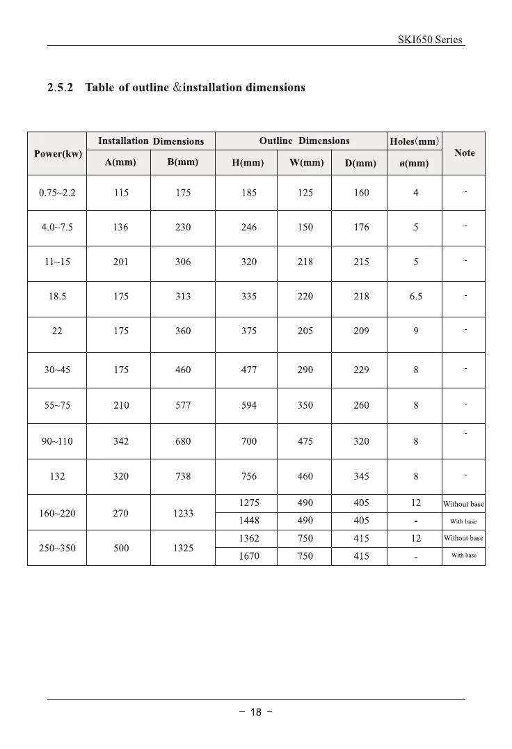 Sako SKI650-2D2G - Chapter 3 Mechanical and Electrical Installation; 3.1 Mechanical Installation