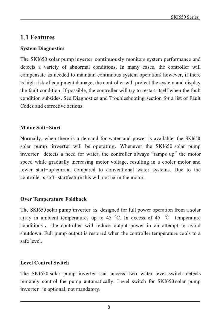 Sako SKI650-2D2G - Features; Motor Soft-Start; Over Temperature Foldback; System Diagnostics
