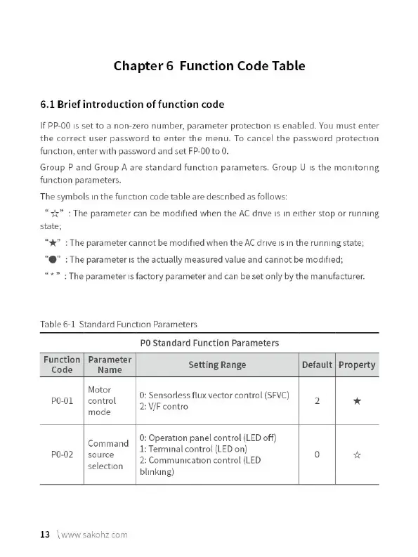 Sako SKI780 - Chapter 6 Function Code Table; 6.1 Brief introduction of function code