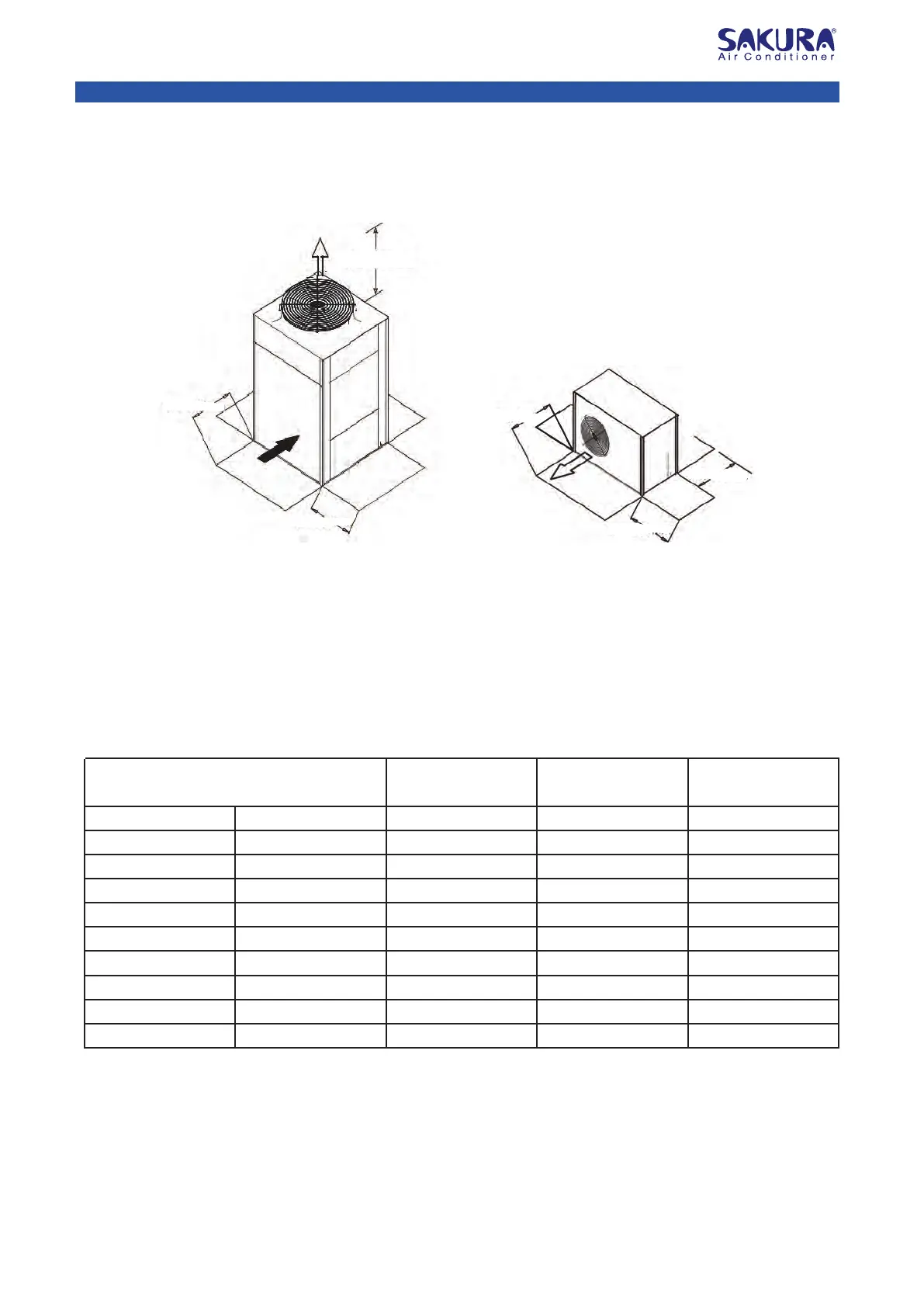 To provide sufcient service clearance and to ensure good air intake and discharge, please refer to the
