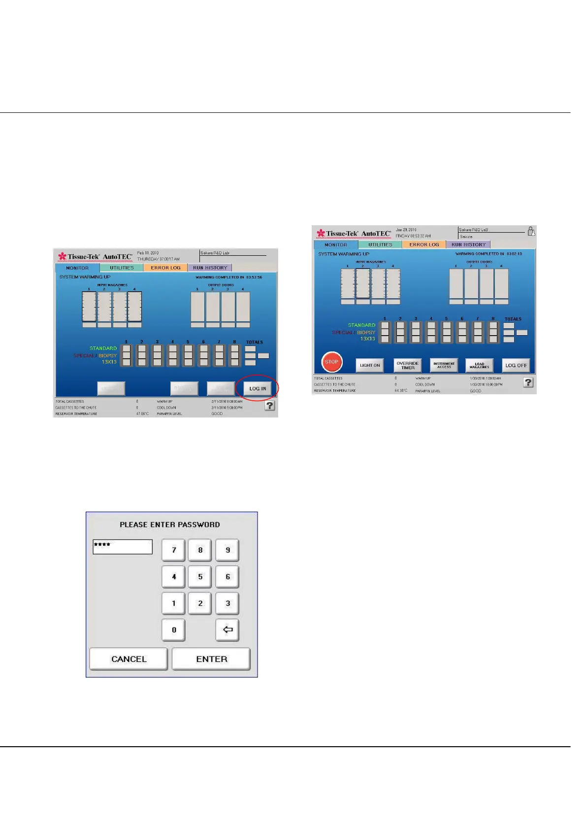 To log in to the AutoTEC, press the LOG IN button on the