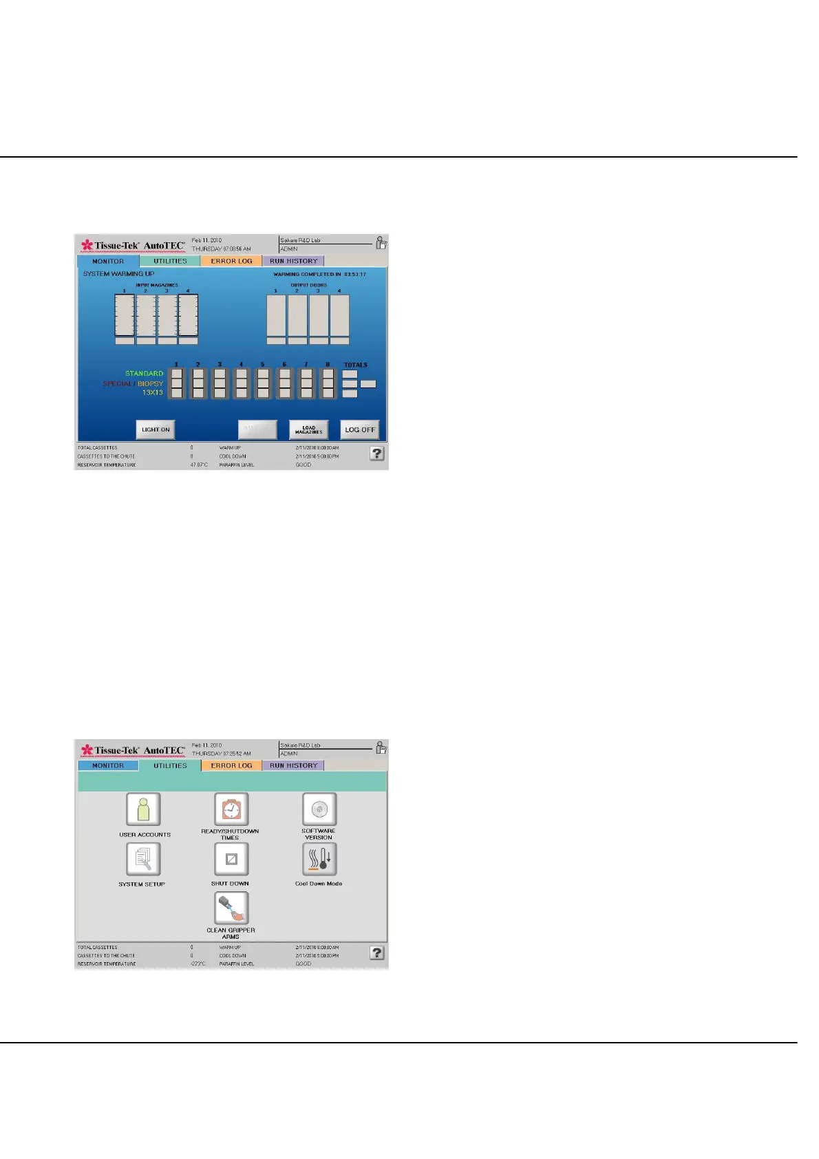 The four operator accessible utility screens are reviewed