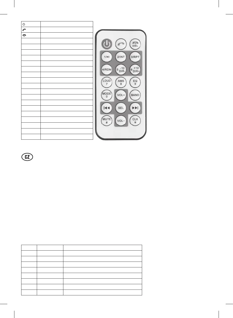 vých frekvencí • Vyobrazení textových informací MP3 „iD3 Tag” • Režimy přehrávání: ukázka skladby, opakování, přehrávání v náhodném pořadí •