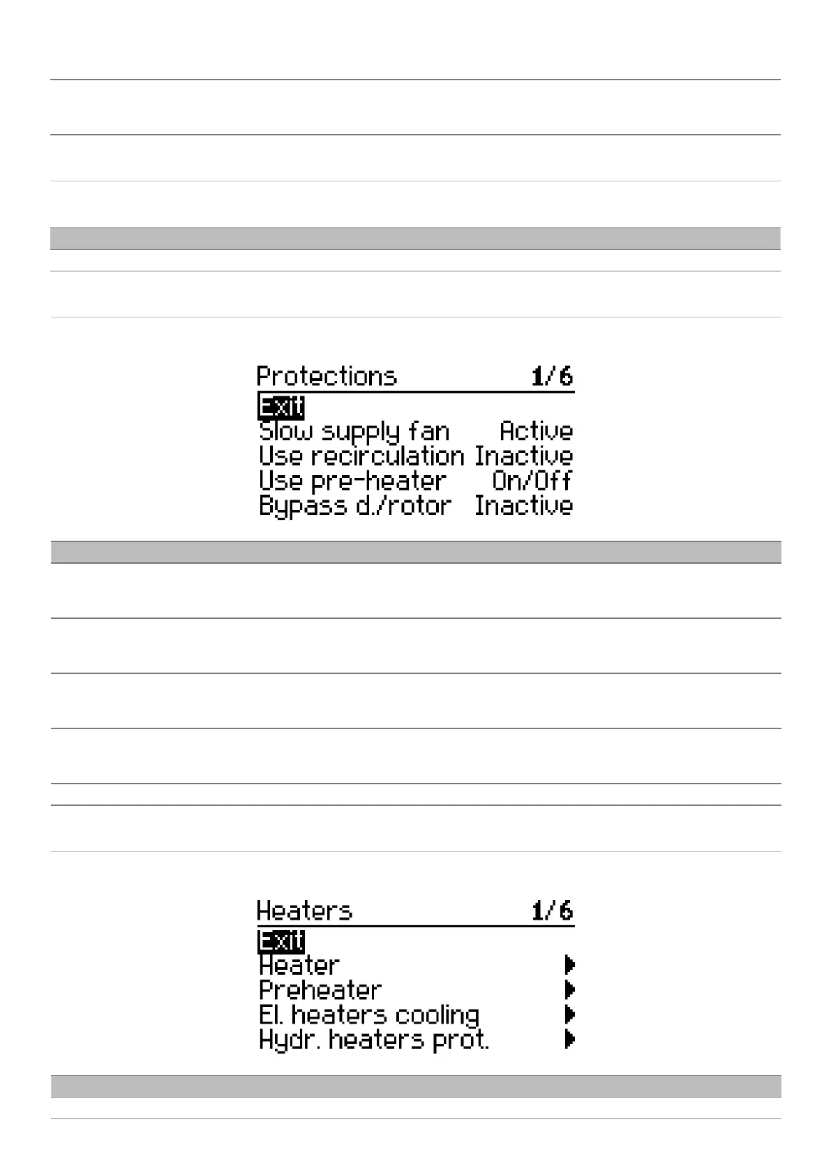 Menu » Service » Heat exchanger » Frost protection » Protections