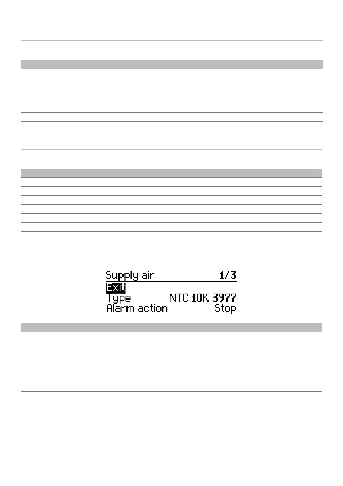 Menu » Service » Sensors » Temperature sensors » Supply air