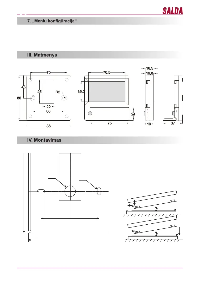 Virštinkiniam montavimui sienoje paruošiama anga ryšio kabeliui d13 ir dvi kiaurymės dėžutės dugno tvirtinimui.