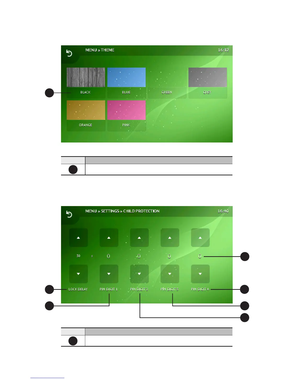 Salda Ptouch - User interface theme selection; Child protection lock configuration
