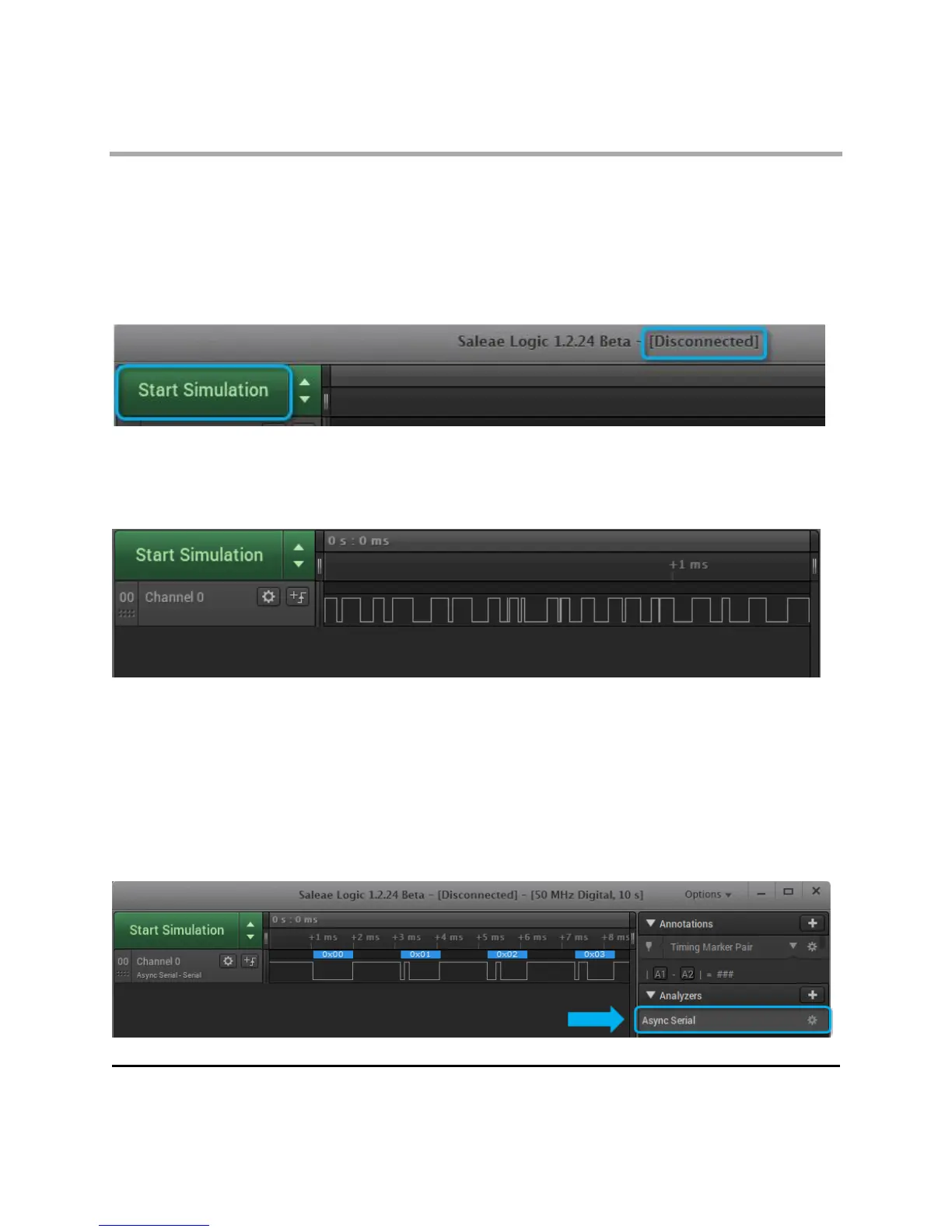 example below, we have added an the Async Seria' Analyzer to Channel 0. Afterwards, clicking 'Start