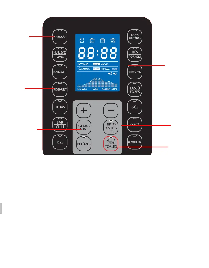 YOMÁSSZINT GOMB: Ez a gomb a főzési nyomás kiválasztására szolgál,