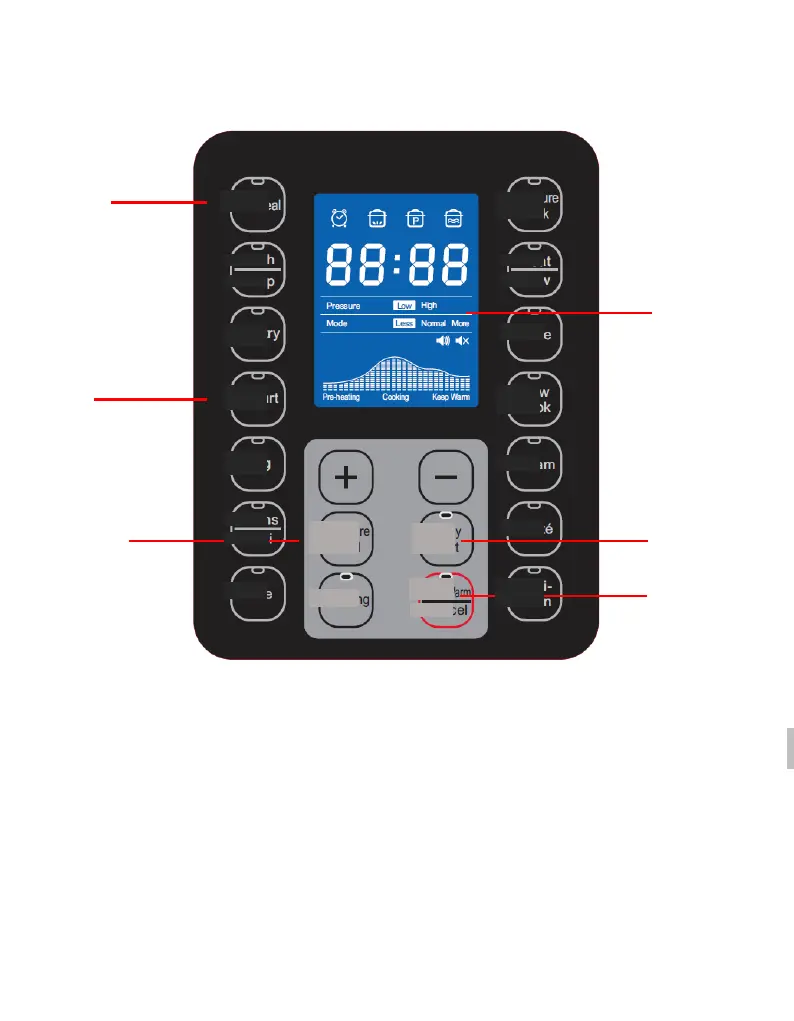 I-TLAČIDLO ÚROVNE TLAKU Toto tlačidlo slúži na výber úrovne tlaku varenia, Nízky