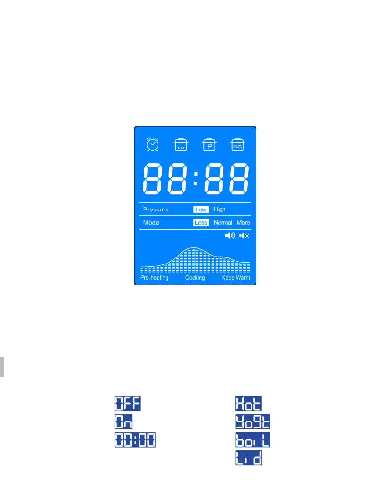 LCD displej používa ikony, slová a čísla pre zobrazenie času, úrovne tlaku, režimov,