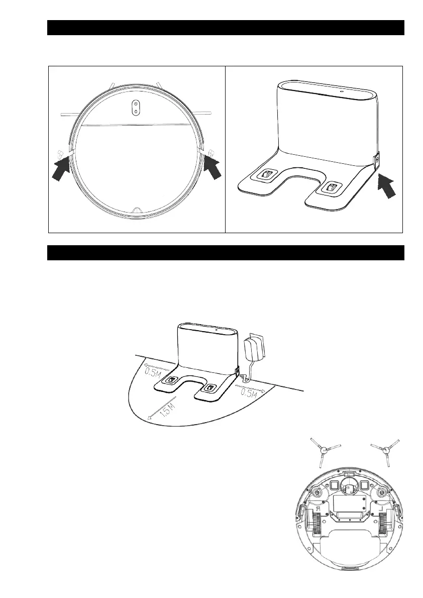 edměty 0,5 m vlevo a vpravo od nabíjecí základny nebo 1,5 m před nabíjecí