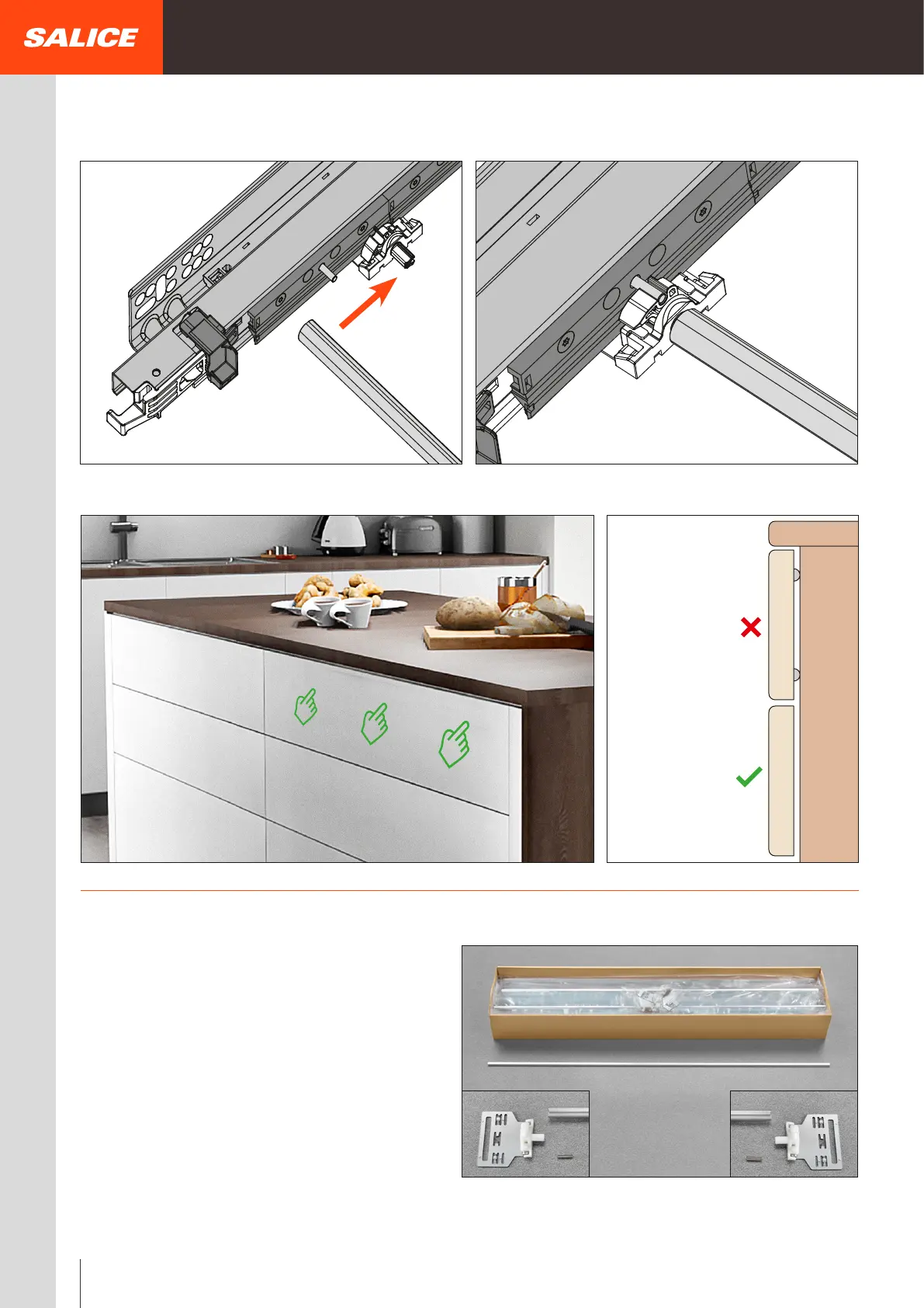 Applying pressure on any part of the drawer front is sufcient for the drawer to open