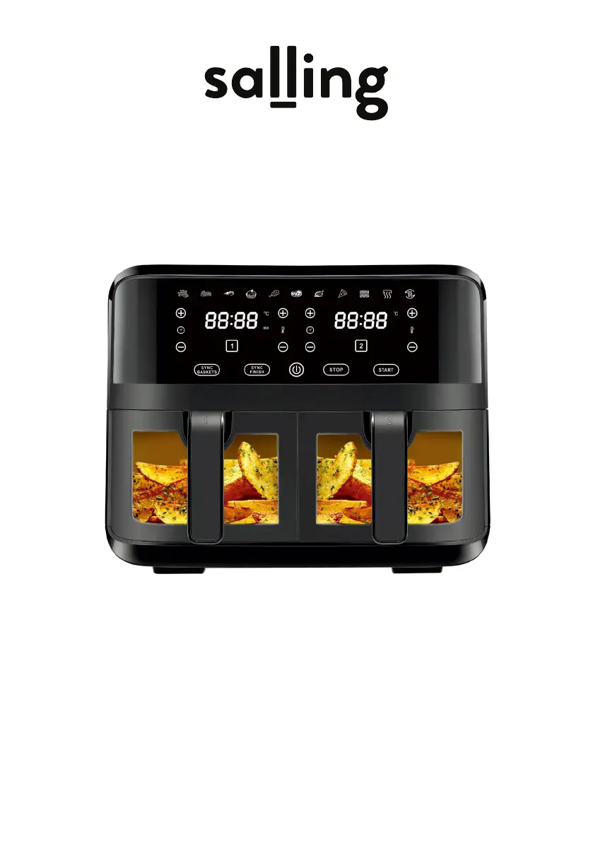 If your ingredients aren't fully cooked in the Salling Kitchen Appliances air fryer, it could be due to several reasons: * Too many ingredients in the basket: Fry in smaller batches for even cooking. * Temperature too low: Increase the temperature to the required setting. * Preparation time too short: Extend the cooking time as needed.