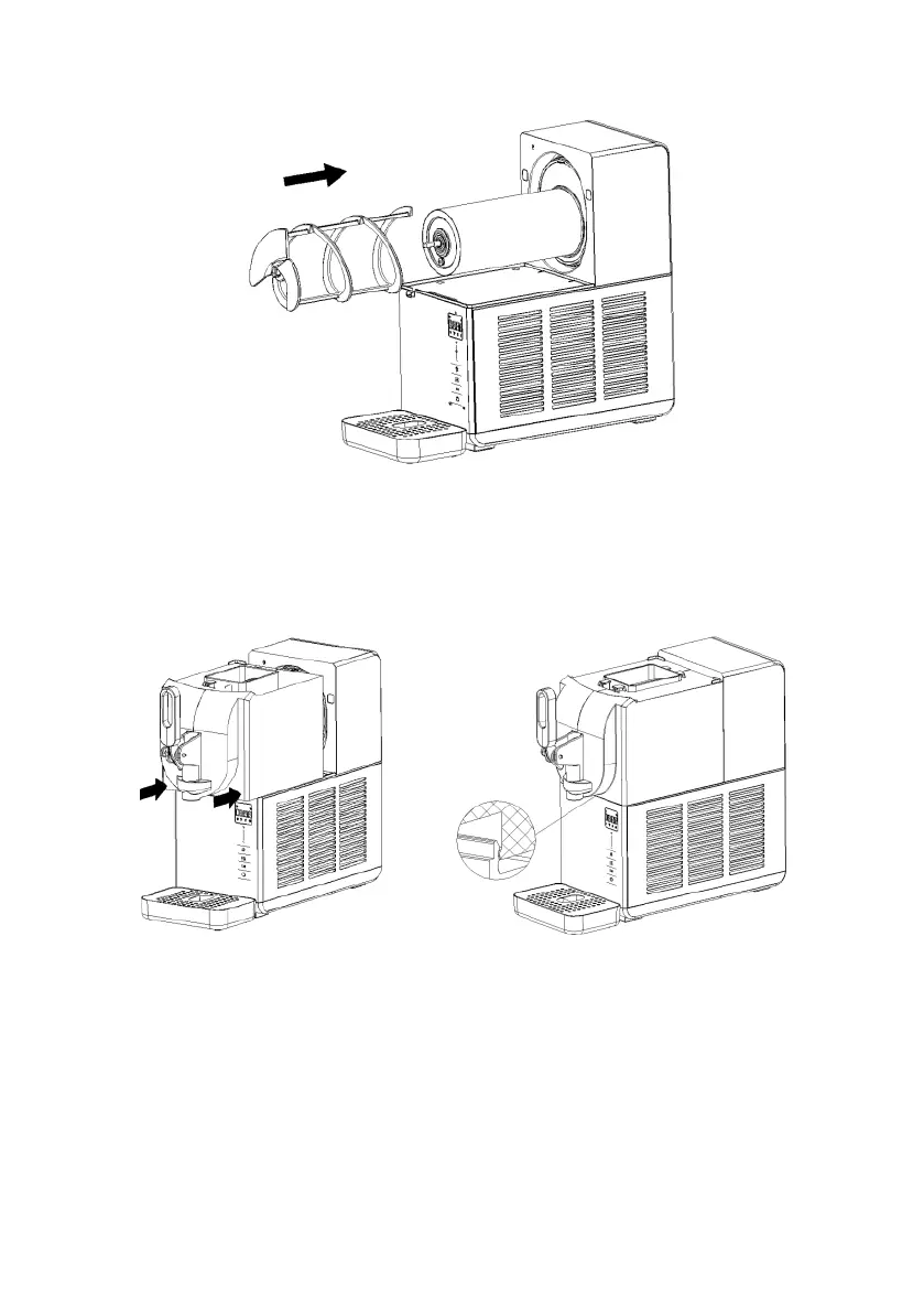 5. Miksningsspaden monteres på køle cylinderen, og miksningsakslen føres gennem