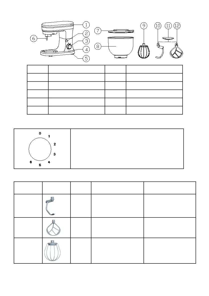 9 Whisk 10 Dough Hook