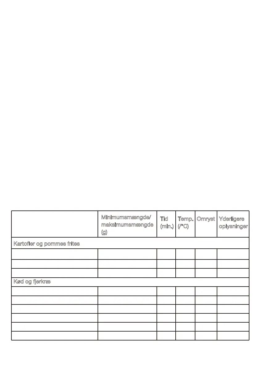 Bemærk: Vær opmærksom på, at disse indstillinger er vejledende. Da madvarer varierer i