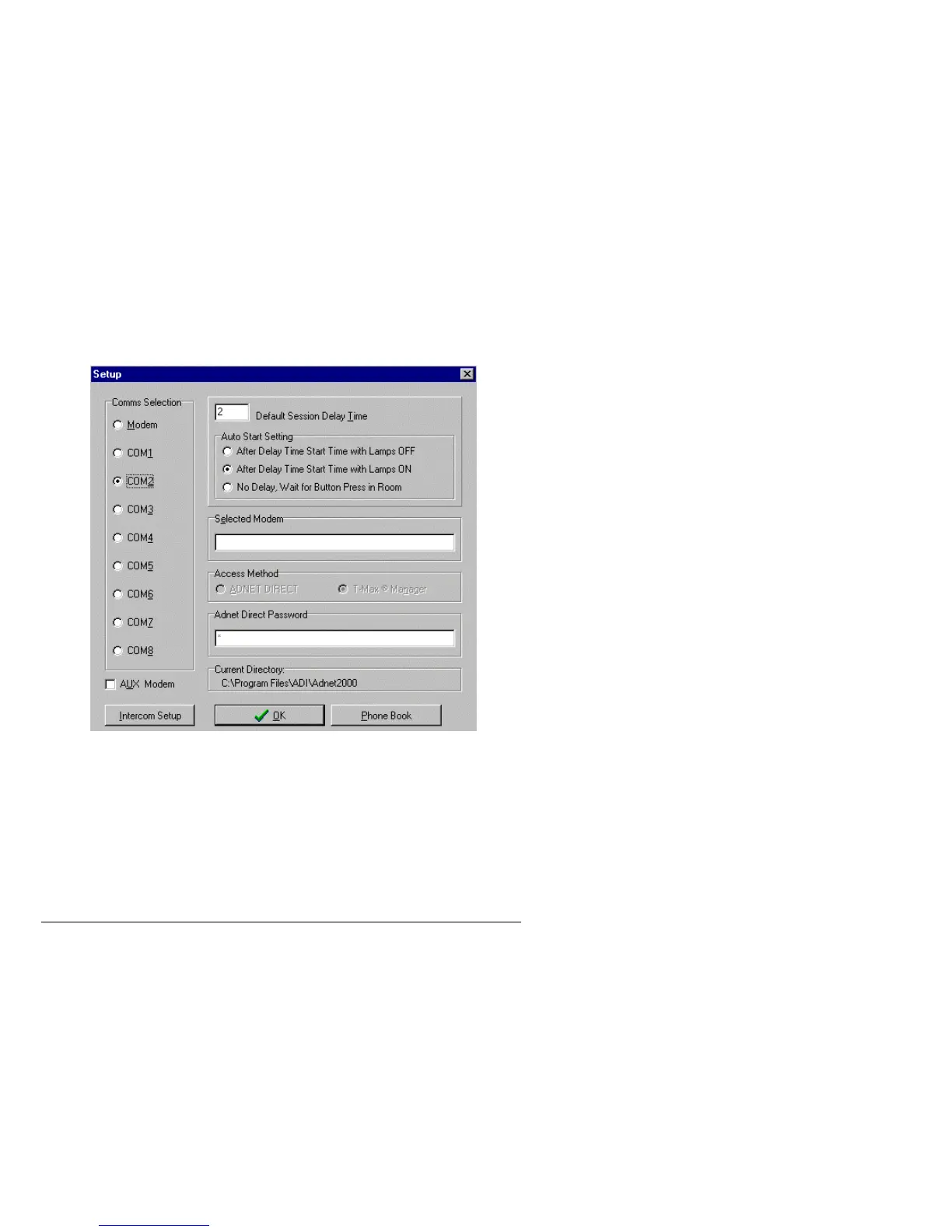 From the ADNET 2000™ window, click Setup. The following screen will appear: