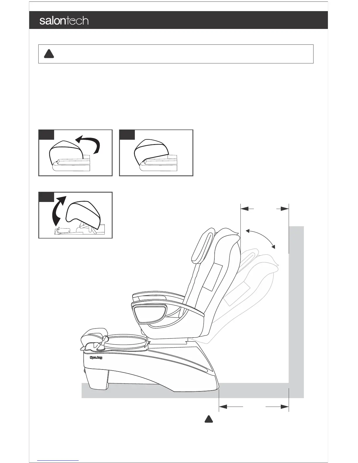 For the seat back to full recline, the pedicure spa base must be mounted 22 inches from the wall as shown below: