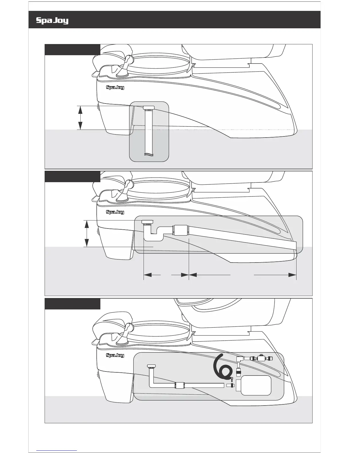 SalonTech Spa Joy - Spa Joy - Plumbing Diagram Details; Floor and Wall Drain Connections; Power Drain and Discharge Pump Setup