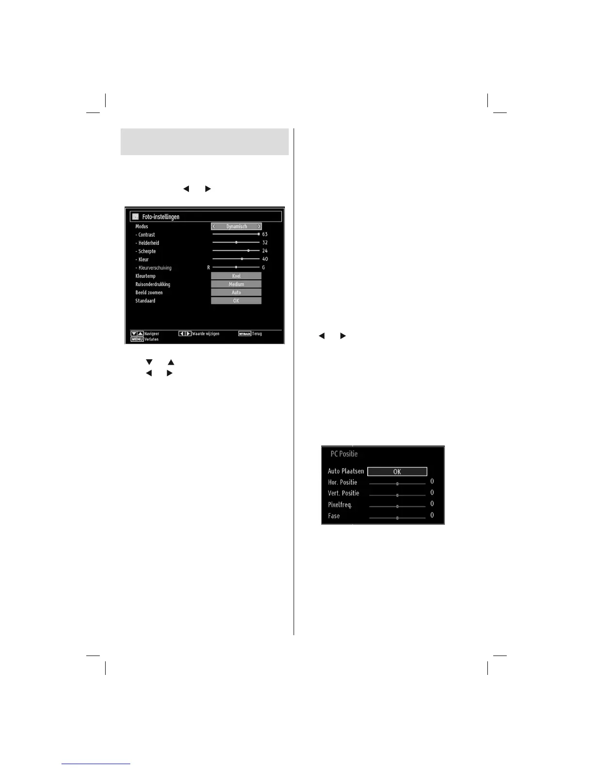 instellingen gedefi nieerd in het TV-beeld menu onder