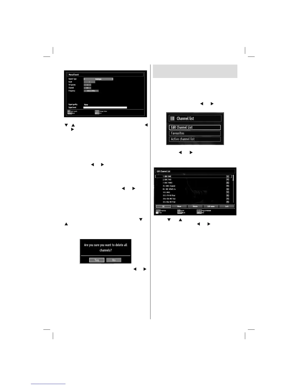 menu by using “ ” or “ ” and OK buttons. Analogue